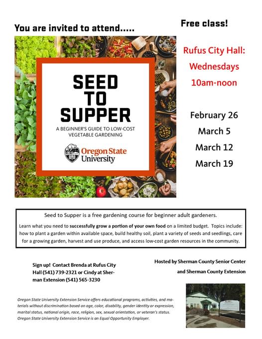 The first series will be in Rufus Wednesday mornings 10am February 26 through March 19...down in the Sherman "banana belt" for gardening!